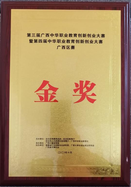 10月12日,以“双创教育匠人精神、舞动青春共创未来”为主题的第三届广西中华职业教育创新创业大赛暨第四届中华职业教育创新创业大赛广西赛区总决赛在广西外国语学院落下帷幕。经过网上评审、现场决赛的激烈角逐,我校最终斩获1项金奖(本科组第二名,并进入国赛网评)、2个优秀指导老师奖,并摘得优秀组织奖。12日下午举行大赛闭幕式,自治区党委统战部副部长、自治区侨办主任林怀勇,自治区政协副主席、民建广西区委主委、广西中华职业教育社主任钱学明出席闭幕式并为获奖项目团队颁奖。