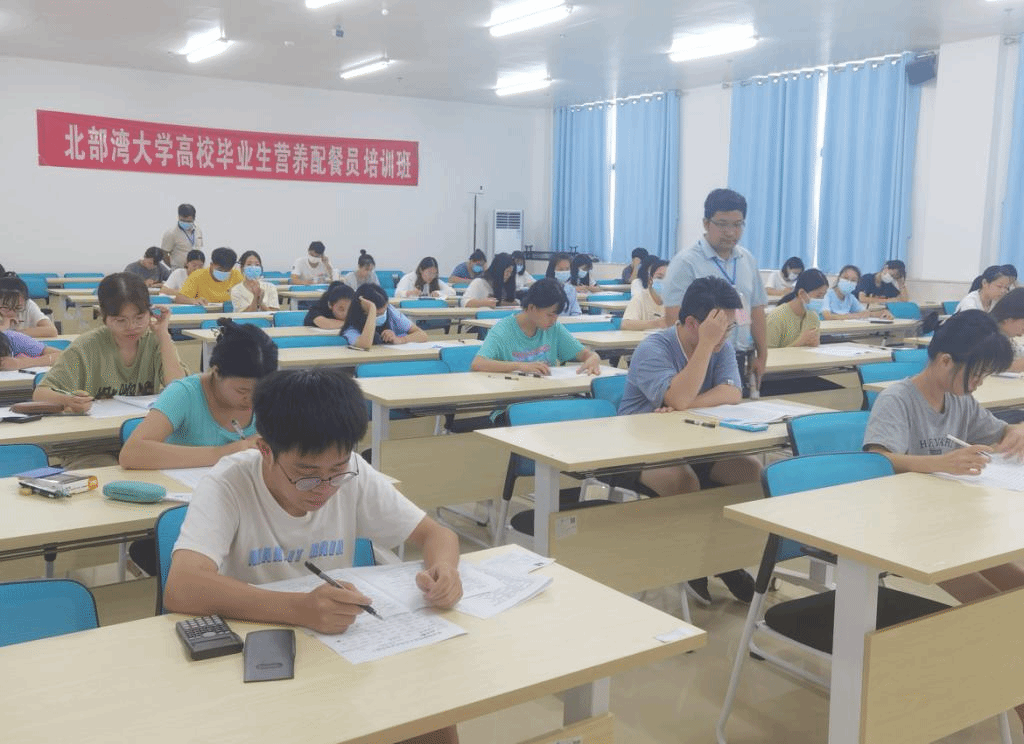 2022年7月,在钦州市人社局指导下,创新创业学院利用暑假时间组织了营养配餐员与汽车维修检验工两个工种的职业技能培训,300多位学员经过长达半个月的强化训练并全员参加了最终的职业技能鉴定考试,过级率达96%。