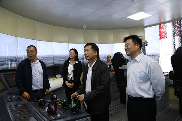 广西职业师范学院党委书记李明辉,校长朱朝霞一行参观我校海运学院航海模拟器
