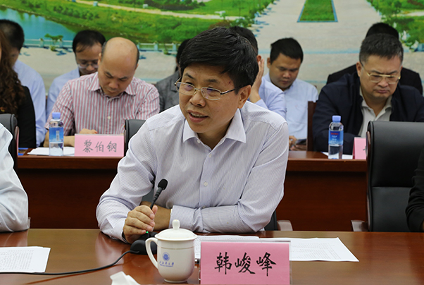会上,我校党委书记赵君对李书记一行人的到来表示热烈欢迎。同时,对广西职业师范学院长期以来对我校建设发展的鼎力支持表示衷心地感谢。他希望以此为契机,继续加强沟通和交流,促进两校的共同发展。韩峻峰校长从办学历史、师资力量、硬件设施、硕士学位点建设情况等多方面向大家介绍了北部湾大学办学概况以及学校党建工作的基本情况、工作成效。
