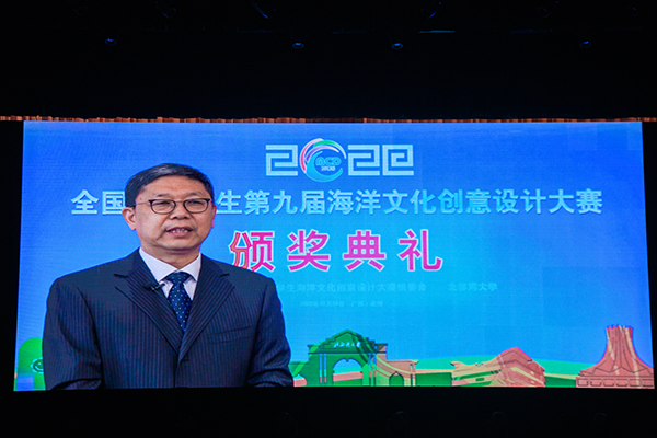 中国海洋发展基金会秘书长潘新春,自然资源部宣教中心副主任赵季青,大赛终审专家、吉林艺术学院校长郭春方,北部湾大学党委书记赵君,钦州市人民政府副市长卢峰,北部湾大学党委副书记陈锦山、副校长陈磊等相关领导出席颁奖典礼。