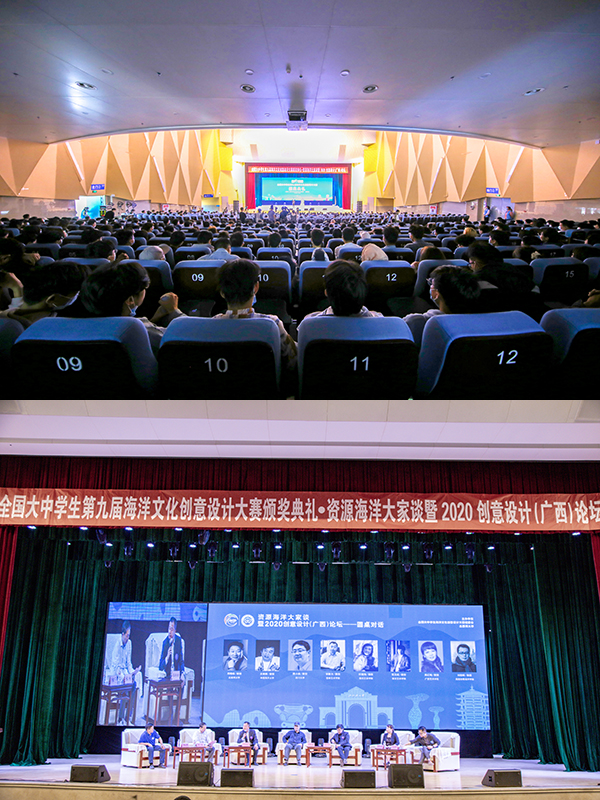 10月24日,全国大中学生第九届海洋文化创意设计大赛颁奖典礼,资源海洋大家谈暨2020创意设计(广西)论坛在我校隆重举行。来自自然资源部宣教中心、中国海洋发展基金会、中国海油公益基金会等单位和全国100多所高校的120多位专家、教授和师生代表共同见证了盛会。近30万人通过网络直播平台关注了活动。