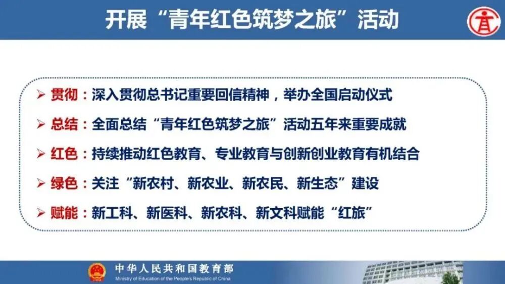 (六)持续推动红色教育、专业教育与创新创业教育有机结合;关注“新农村、新农业、新农民、新生态”建设;新工科、新医科、新农科、新文科赋能“红旅”。